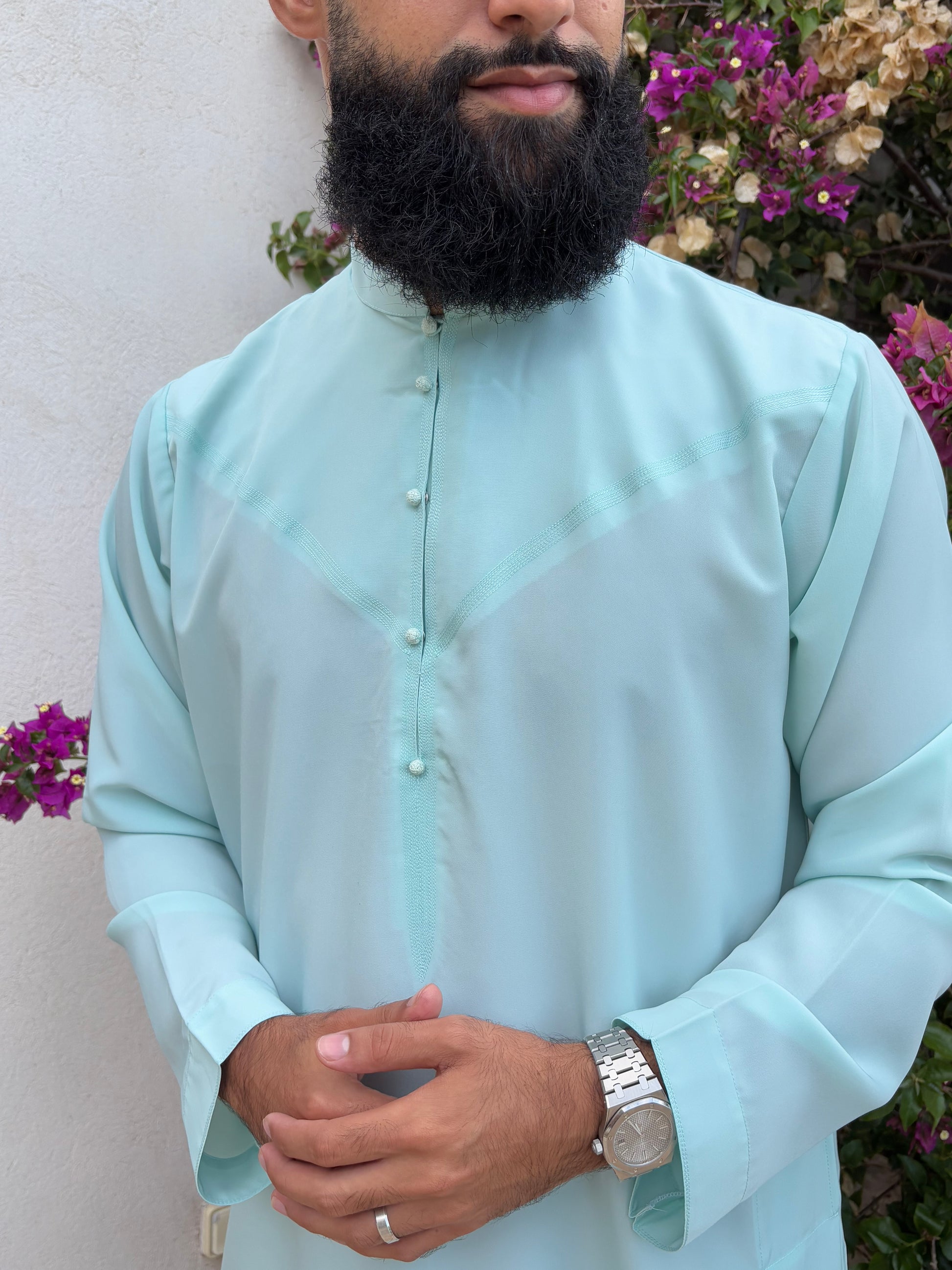 Confectionné à Dubaï avec un tissu fluide et léger, ce qamis allie élégance et confort.