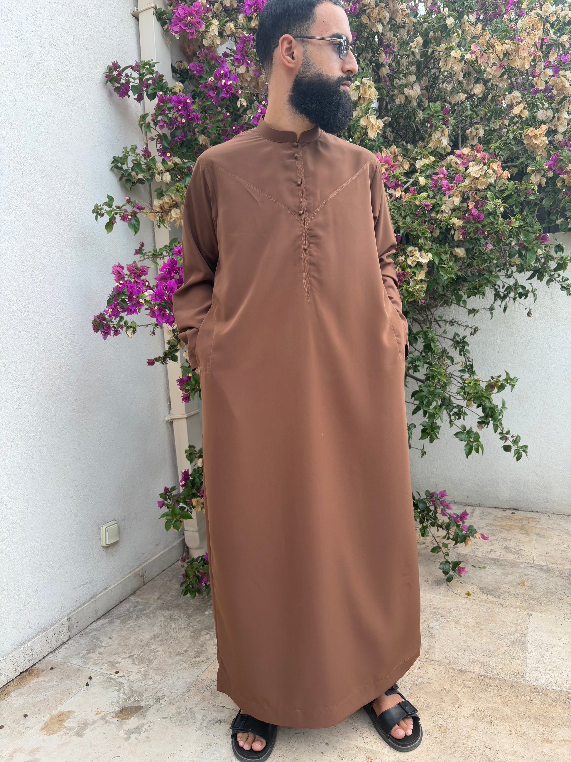 Confectionné à Dubaï avec un tissu fluide et léger, ce qamis allie élégance et confort.