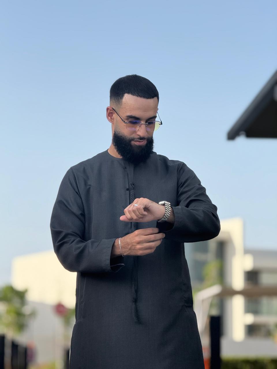 Découvrez notre qamis vert foncé, une création d'exception où le savoir-faire artisanal de Dubaï sublime la richesse des tissus saoudiens. Cette tenue incarne l'alliance parfaite entre la tradition ancestrale et l'élégance contemporaine, dans une couleur qui évoque la profondeur des palmeraies et la richesse du patrimoine arabe.
